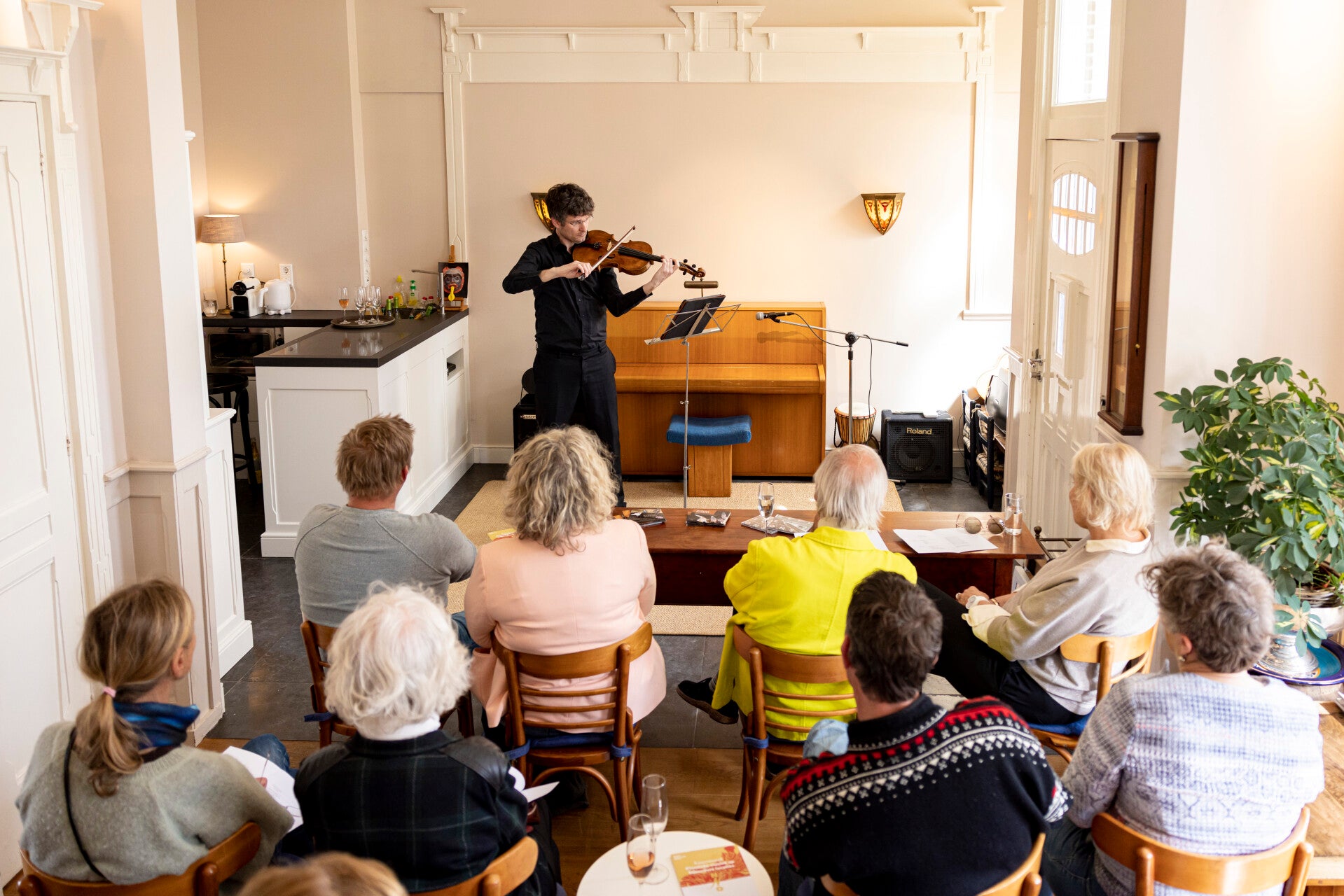 Ervaar de magie van een intiem huiskamerconcert in een prachtig Eilander huis in Nieuw-Amsterdamse bouwstijl. Met een capaciteit van maximaal 25 personen geniet u van een persoonlijke interactie met de musici en een geweldige akoestiek. Ieder concert is een unieke belevenis.